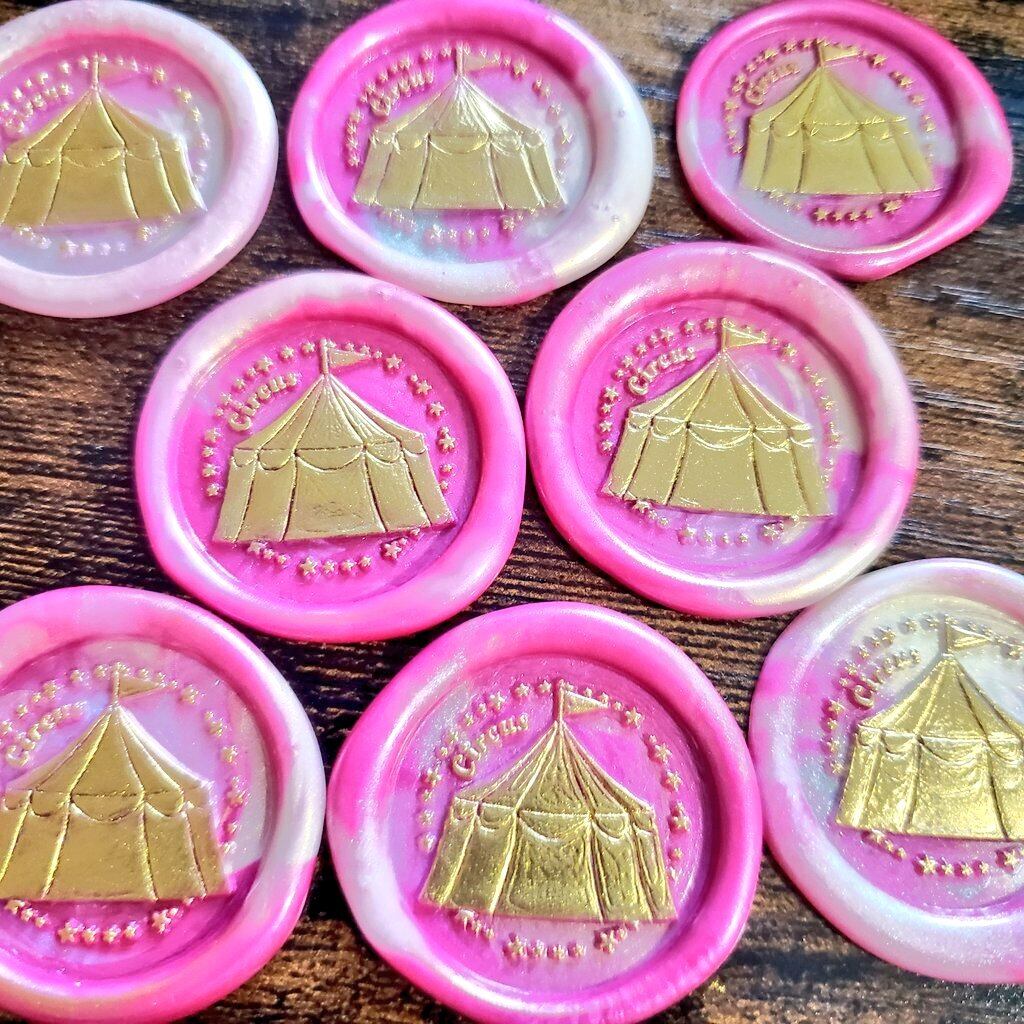 最新作サーカステントヘッドを使ったピンクとパールカラーのマーブルで可愛く仕上げたシーリングスタンプです🎪ヘッドの販売は未定です。